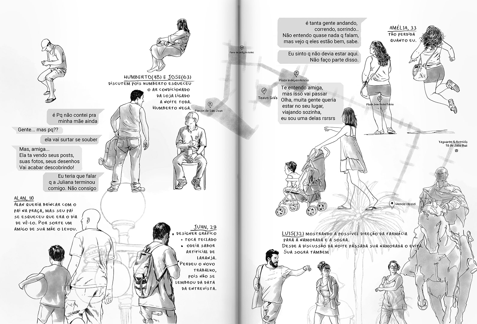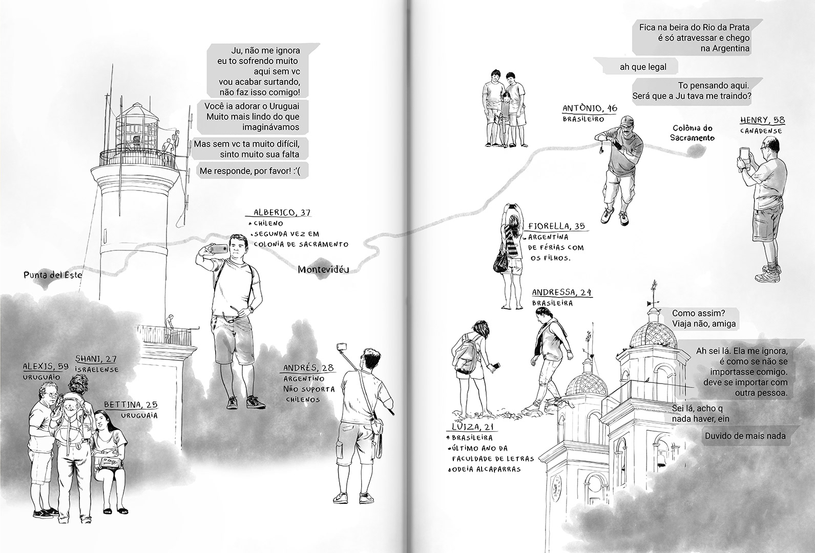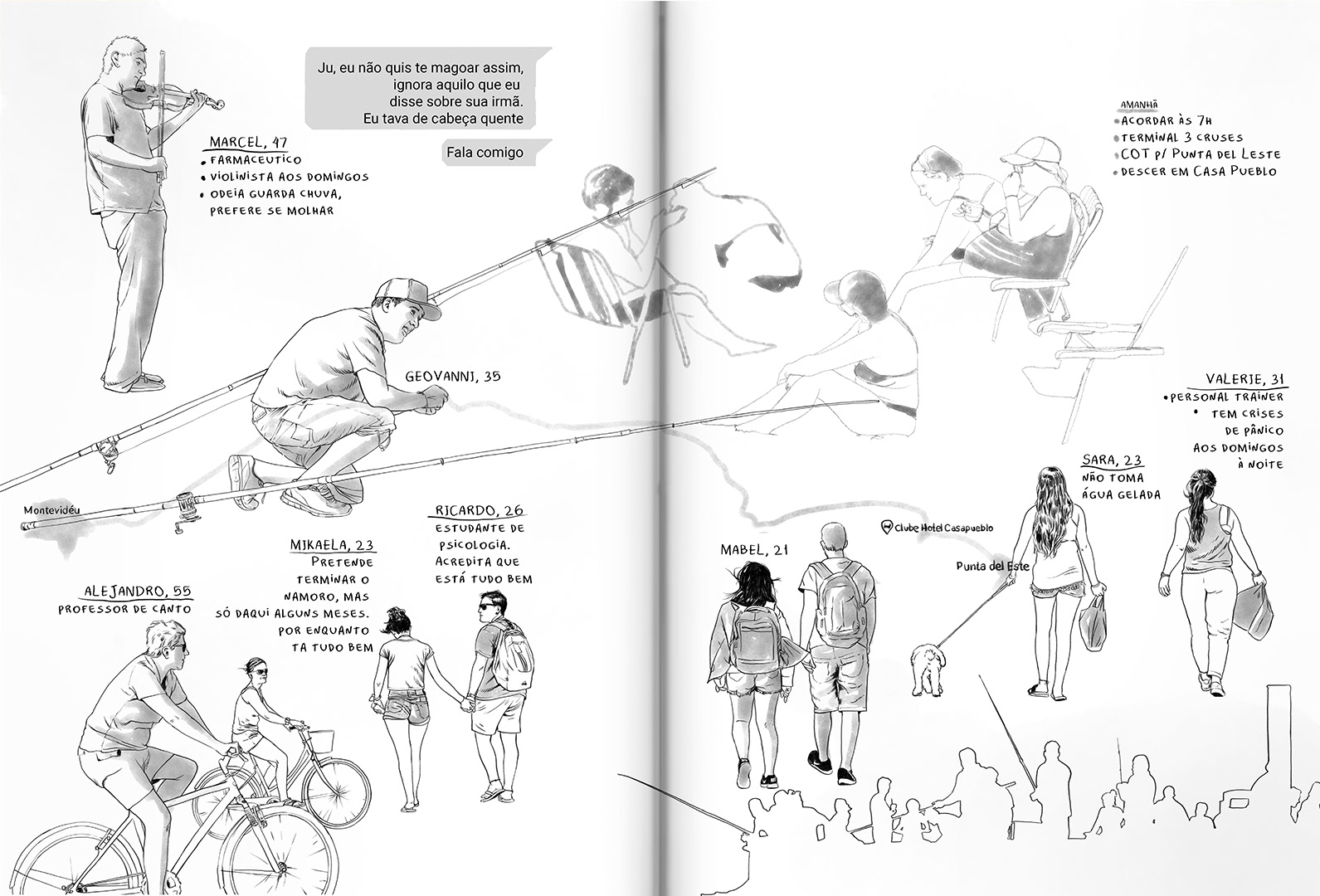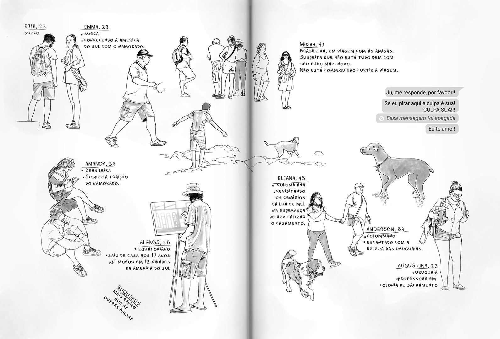 Viajando sozinha, Letícia tenta processar o luto do fim de um relacionamento ao escrever sobre a vida dos desconhecidos que cruzam seu caminho.